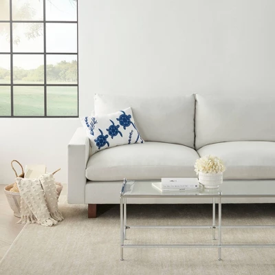 Lounge in comfort with this embellished, beach-themed throw pillow by Mina Victory Home Accents. A trio of turtles in rich ocean blue floats peacefully among sea plants, all handmade in towel-stitched embroidery with a textured terrycloth feel. Versatile 14” x 20” rectangle works as single accent or in a pillow mix.