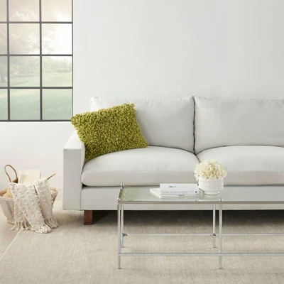 The Chindi Woven Shag throw pillow from Mina Victory Home Accents puts a funky spin on a classic pillow design. Its textured face is covered with strips of poly-cotton blended fabric that feels amazingly soft to the touch, making it a staple while you curl up with your favorite book or TV show. Lovingly handmade in a lime green tone with a woven cotton back and includes a polyester fill. 14” x 20” rectangle. Pattern appears on face only.