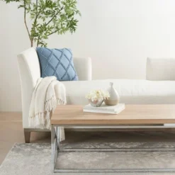 Take your casual decor up a notch with this oblong throw pillow from Mina Victory Home Accents. Pure cotton, woven skillfully in solid white with nubby stitches, adds subtle texture to your couch, chair, or other seating area. Handmade 14-inch x 24-inch rectangle includes polyester insert and zipper closure. Available in multiple coordinating sizes and colors.