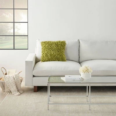 The Chindi Woven Shag throw pillow from Mina Victory Home Accents puts a funky spin on a classic pillow design. Its textured face is covered with strips of poly-cotton blended fabric that feels amazingly soft to the touch, making it a staple while you curl up with your favorite book or TV show. Lovingly handmade in a lime green tone with a woven cotton back and polyester fill. 17” square. Pattern appears on face only.