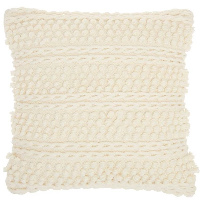 Here’s a fabulously textured Lifestyle pillow that you’ll love to lounge on. Its woven stripe design features alternating rows of pom-poms and cable stitching for a lusciously thick and soft surface. Versatile for décor ranging from posh to casual. Zipper closure for easy removal and cleaning. Recommend spot cleaning as needed using a gentle cleanser.