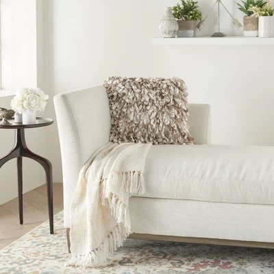 Playful and plush, this Mina Victory Lifestyle throw pillow adds a lively note of personal style to your décor. The thick and generous ribbon loop is absolutely irresistible for comfortable lounging on a favorite sofa or chair, or bed. Handcrafted, in versatile decorator colors. Zipper closure for easy removal and cleaning. Recommend spot cleaning as needed using a gentle cleanser.