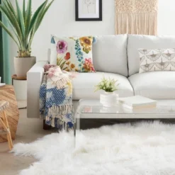 18″x18″ Reversible Indoor/Outdoor Coral And Dotted Square Throw Pillow Turquoise – Mina Victory