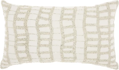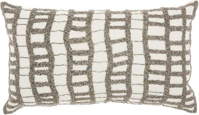 - Modern lumbar pillow with beaded geometric accents adds a luxurious touch to glam and contemporary decor